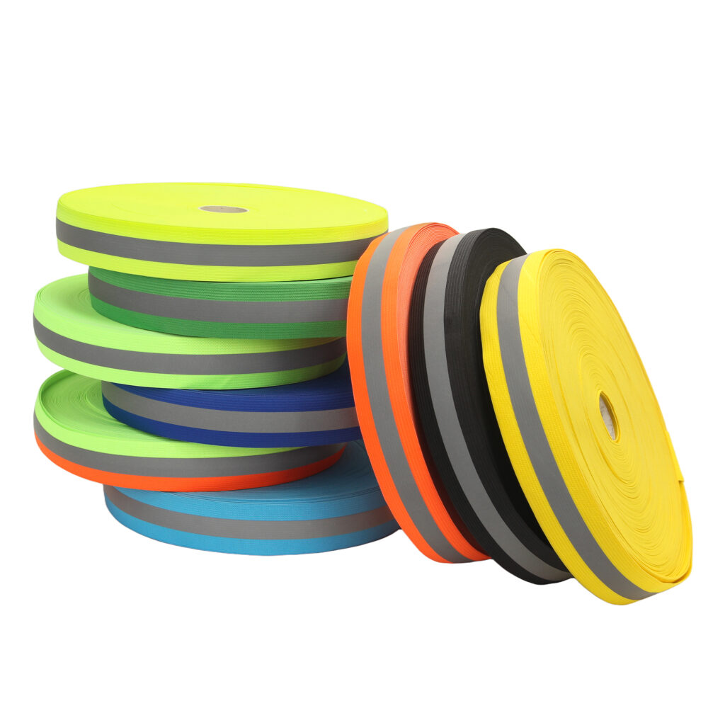 • Polyester reflective webbing – UV-resistant, colorfast, and excellent for long-term outdoor use such as bags, backpacks, and safety straps.