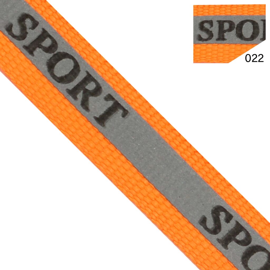 - Materials: reflective polyester ribbon or jacquard logo webbing