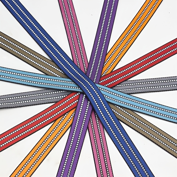 • Nylon reflective webbing – known for its high strength, smooth texture, and elasticity, perfect for outdoor and pet gear.